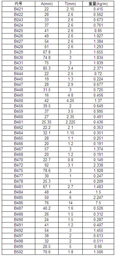 A(mm) | B(mm) | T(mm) | 重量(kg/m) |